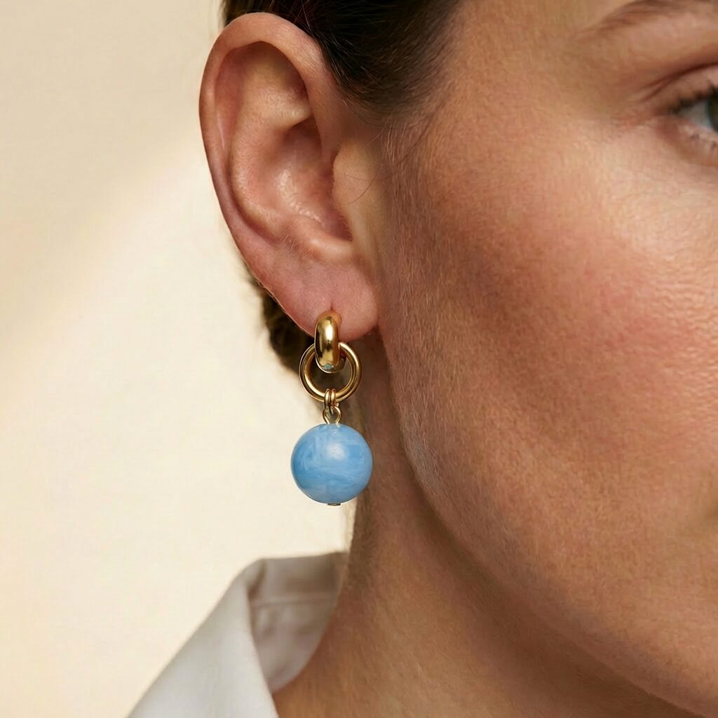 Op zoek naar iets bijzonders? Deze handgemaakte oorringen zijn ontworpen met een dromerige licht blauwe hanger. Elk paar wordt met zorg in Nederland gemaakt en straalt zachtheid en verfijning uit. Draag ze solo voor een subtiel statement of combineer met jouw favoriete items uit de collectie.