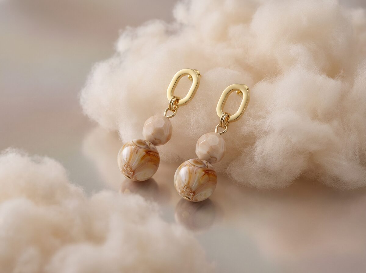 Deze handgemaakte oorhangers zijn ontworpen met twee beads in een dromerige beige tint en stralen pure verfijning uit. Met zorg gemaakt in Nederland en perfect in balans tussen zacht en stijlvol. Een tijdloos ontwerp dat je solo draagt of combineert met jouw favoriete sieraden uit de collectie.