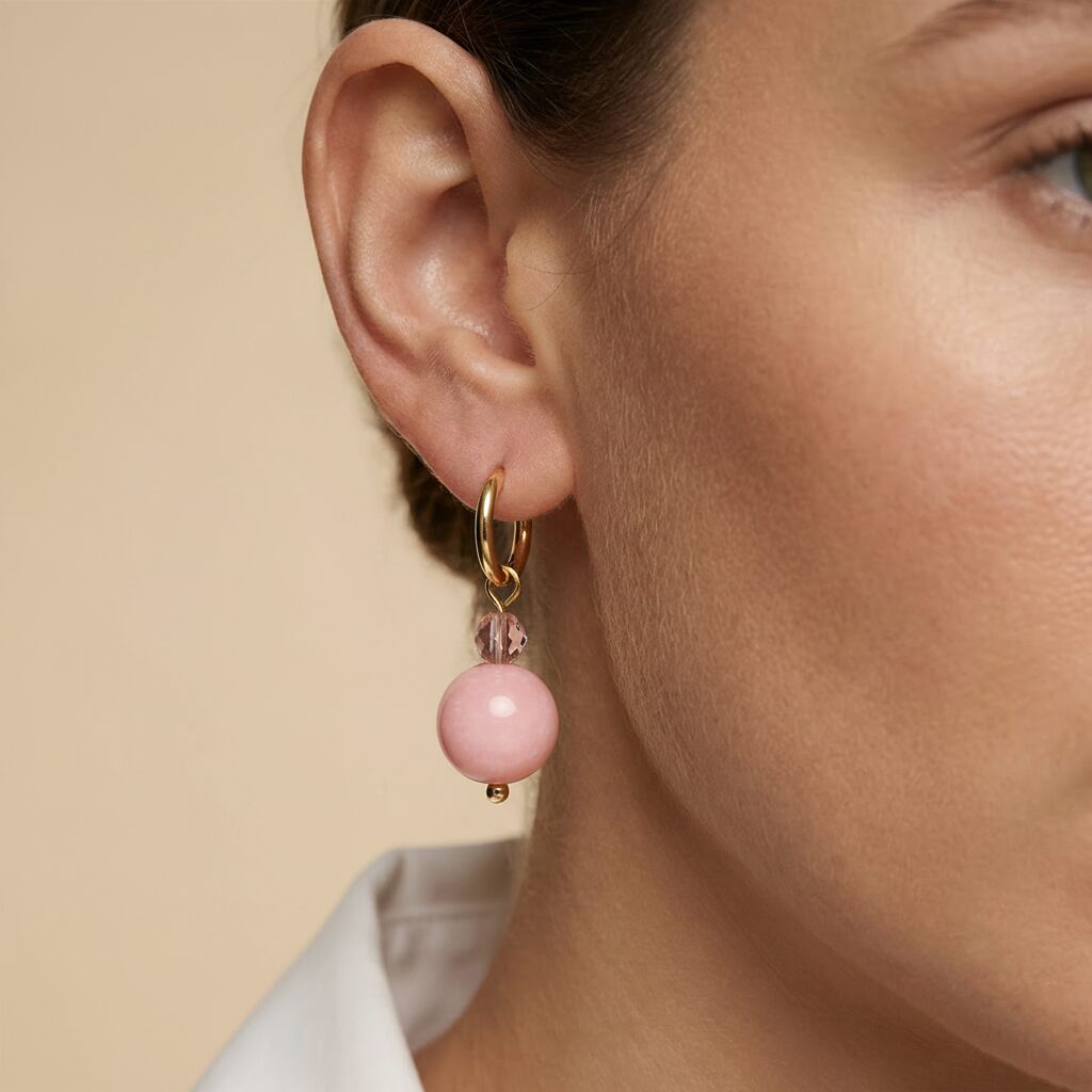 Deze handgemaakte oorhangers combineren een normale kraal met een glaskraal in een dromerige lichtroze tint en stralen rustige luxe uit. Met zorg gemaakt in Nederland en perfect in balans tussen zacht en stijlvol. Draag ze als subtiele eyecatcher en creëer een look die verfijning én zelfvertrouwen uitstraalt, solo of in combinatie met andere sieraden uit de collectie.