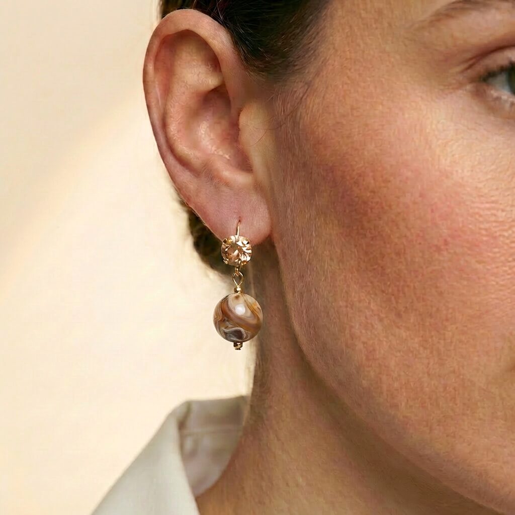 Deze beige handgemaakte oorhangers combineren een Swarovski steen met een bead en stralen een rustige, verfijnde luxe uit. Met zorg gemaakt in Nederland en perfect in balans tussen elegant en speels. Combineer ze met andere sieraden uit onze collectie.