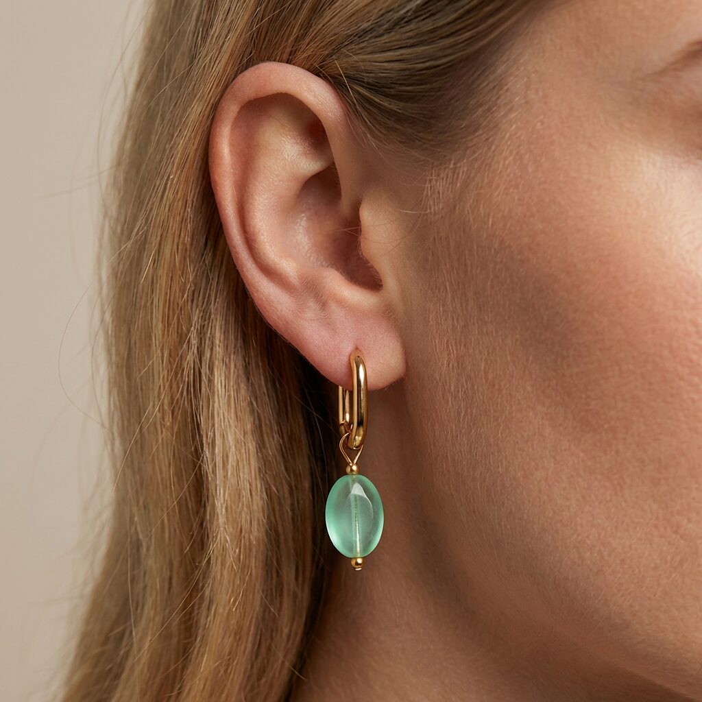 Deze oorringen hebben een prachtige minty sorbet kraal en een gouden sluiting. Ze zijn perfect voor iedere gelegenheid. Of je nu een casual look wilt creëren of je outfit wilt opleuken voor een speciale gelegenheid, deze oorhangers zijn de perfecte accessoire! De oorringen zijn gemaakt van stainless steel, dus zijn waterproof en verkleuren niet!