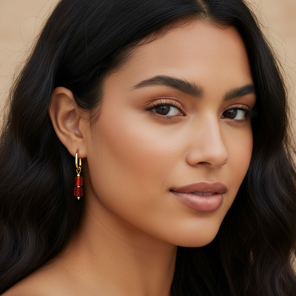 Deze oorringen hebben een prachtige rode glaskraal en een gouden sluiting. Ze zijn perfect voor iedere gelegenheid. Of je nu een casual look wilt creëren of je outfit wilt opleuken voor een speciale gelegenheid, deze oorhangers zijn de perfecte accessoire! De oorringen zijn gemaakt van stainless steel, dus zijn waterproof en verkleuren niet!