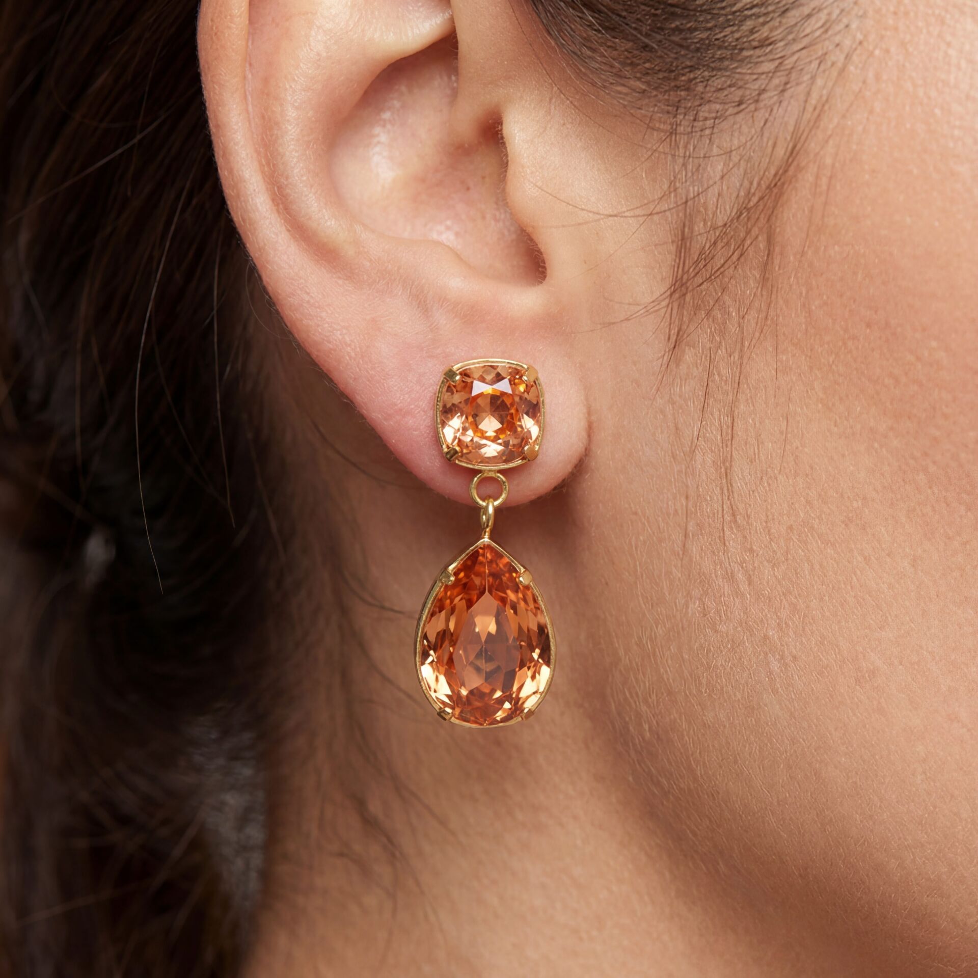 Deze oorhangers met 2 Swarovski steentjes stralen een verfijnde luxe uit. Ze zijn met zorg gemaakt in Nederland en zijn perfect in balans tussen elegant en speels. Combineer ze met andere sieraden uit onze collectie.