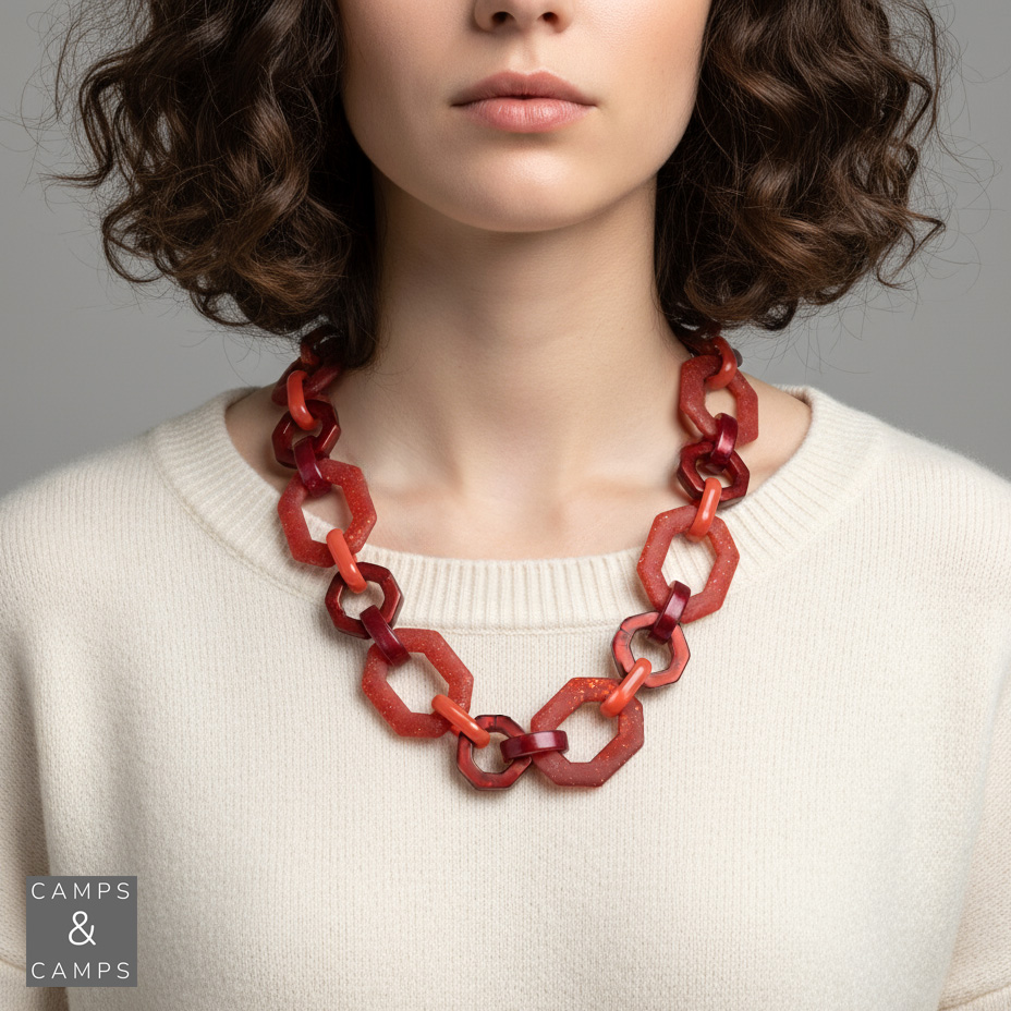 Deze ketting speelt met krachtige lijnen en geometrische vormen. De hexagon schakels geven een moderne twist aan je look en zorgen voor een opvallend sieraad met karakter.