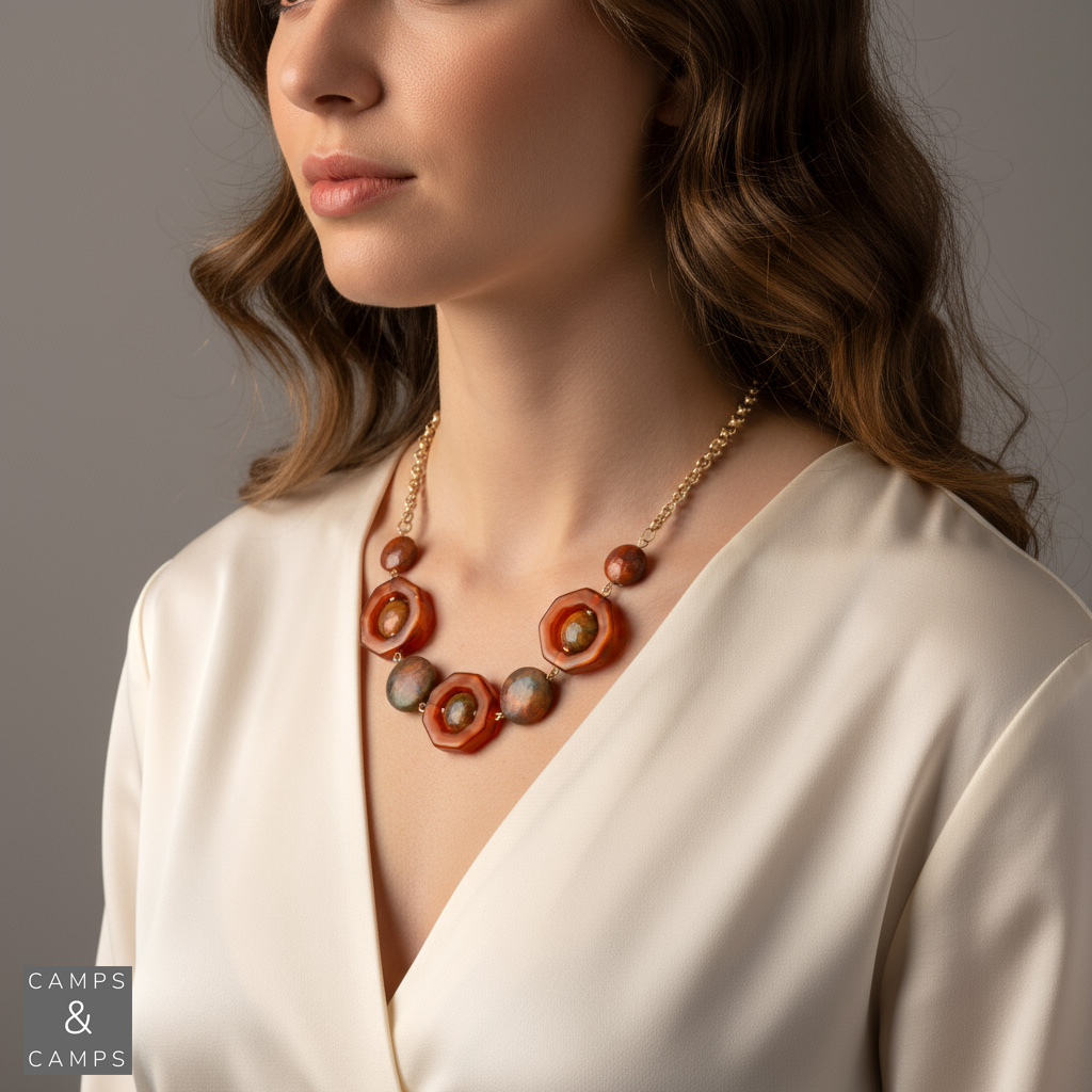 Deze ketting straalt tijdloze elegantie uit. De subtiele vormen en kosmische glans maken het een sieraad dat moeiteloos opvalt en bij elke look past.