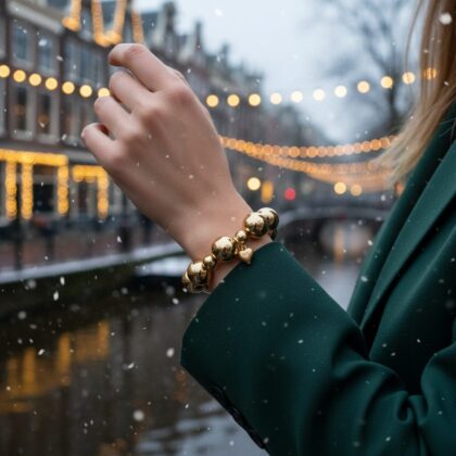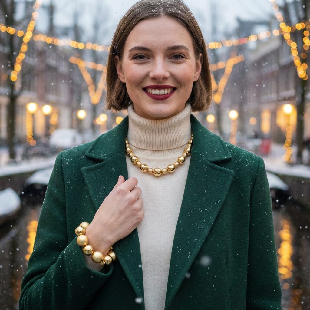 Medium matte ronde vergulde hoops gecombineerd met medium glimmende kralen.