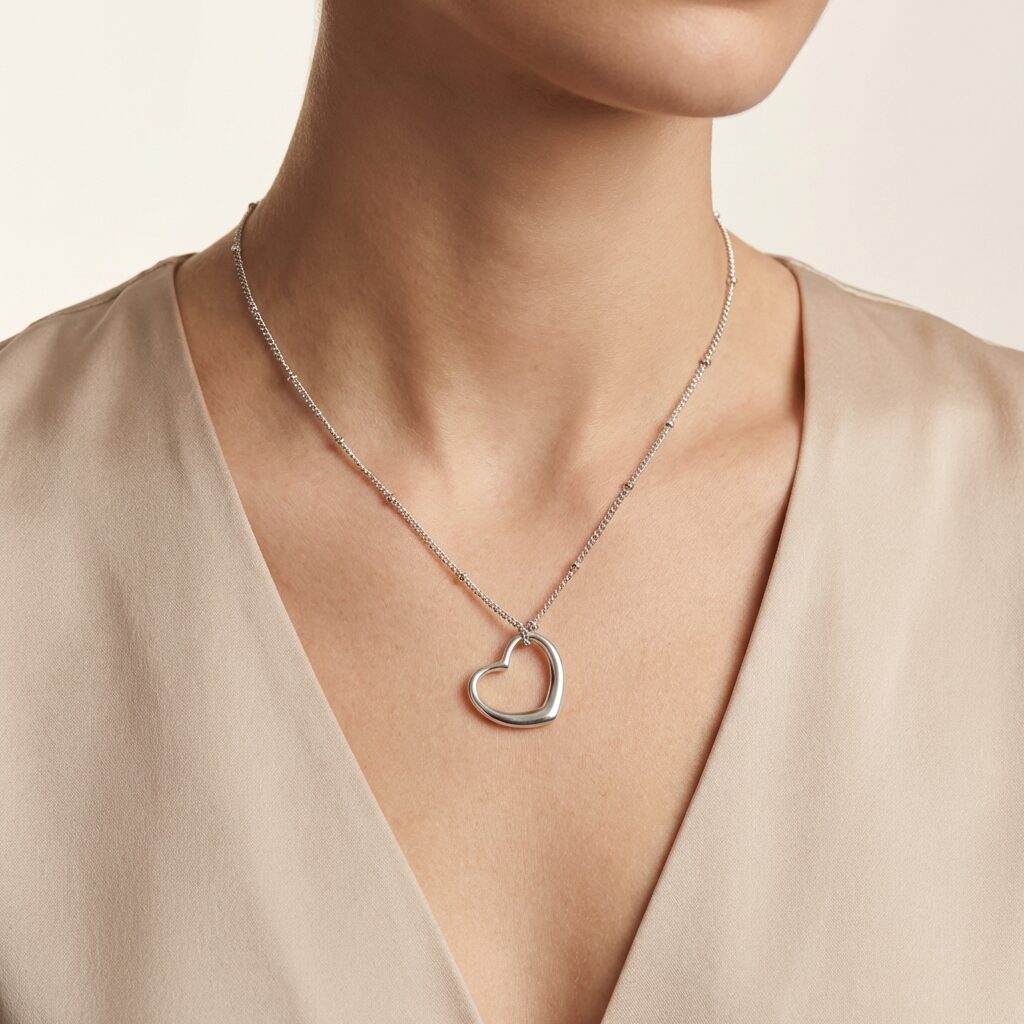 Deze zilveren ketting met open hart hanger is een echte eyecatcher! Geen massaproductie, maar een uniek sieraad dat met zorg met de hand in Nederland wordt gemaakt. Het open hart geeft een zachte, romantische uitstraling en maakt jouw look helemaal af. Mix & match met andere items uit onze nieuwe collectie. De ketting is gemaakt van stainless steel, dus is waterproof en verkleurt niet!