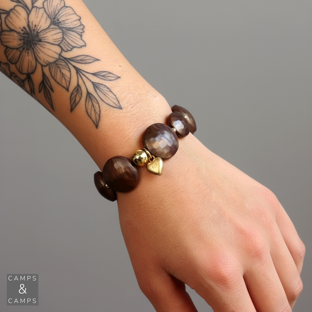 Deze armband is stoer en stijlvol in één. De ronde, platte kralen vangen het licht op een subtiele manier en geven het sieraad een elegante vintage uitstraling – een echte eyecatcher voor elke look.