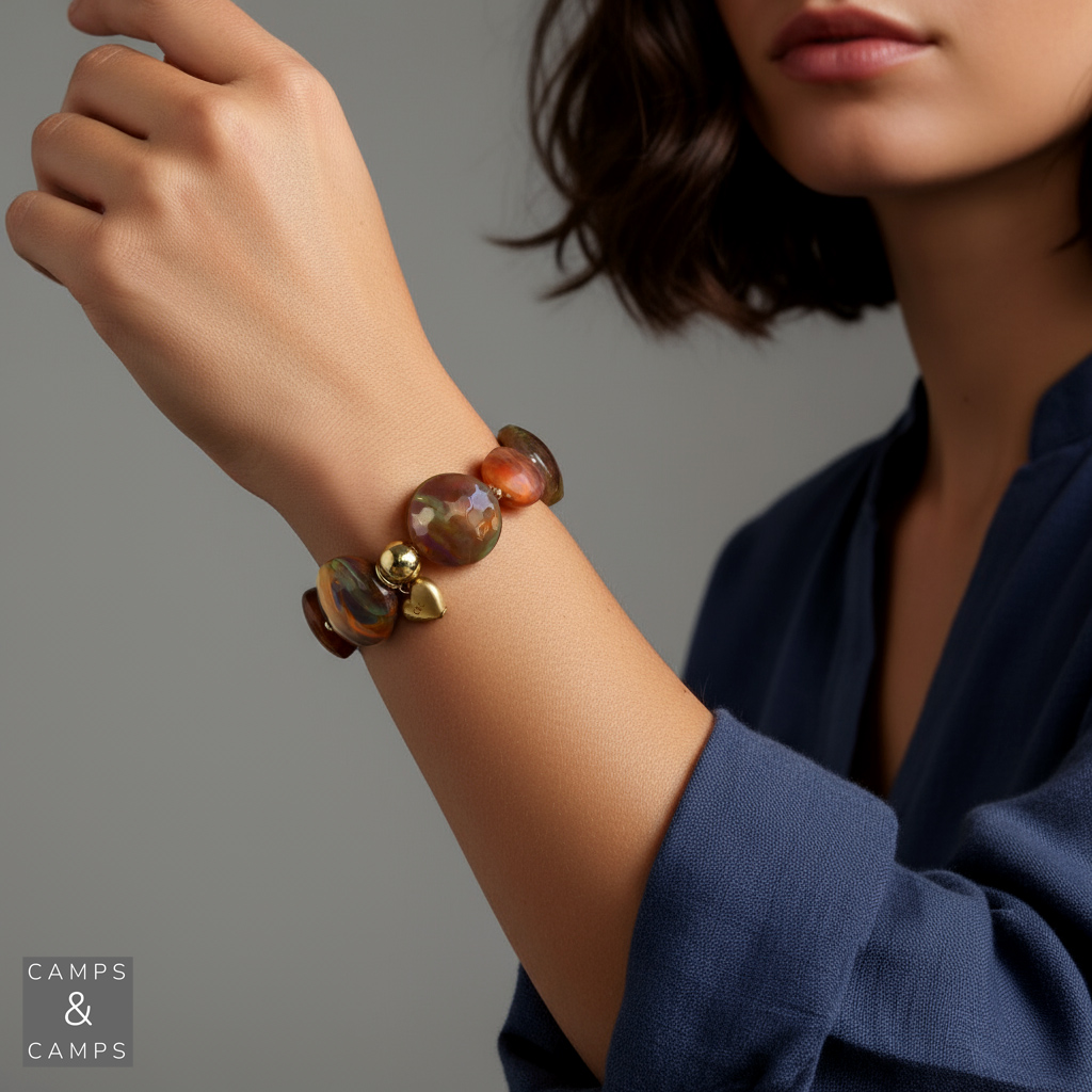 Deze armband is stoer en stijlvol in één. De ronde, platte kralen vangen het licht op een subtiele manier en geven het sieraad een elegante vintage uitstraling – een echte eyecatcher voor elke look.