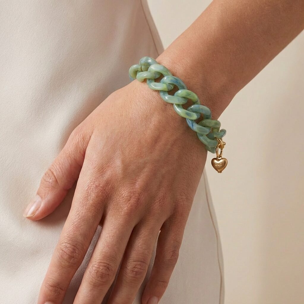 Deze armband combineert een vlakke vorm met een krachtige uitstraling. De brede schakels en verfijnde details zorgen voor een moderne en stijlvolle look die direct opvalt. Leuk om te combineren met bijpassende oorhangers.