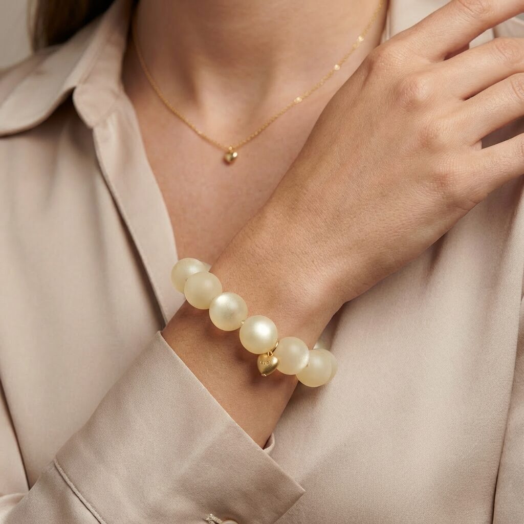 Een armband die meteen opvalt door haar zachte glans! Deze armband met hoogwaardige glasparels geeft jouw outfit een elegante en luxe touch. Omdat glas een verfijnd materiaal is, adviseren we om er met zorg mee om te gaan zodat je er extra lang van kunt genieten.