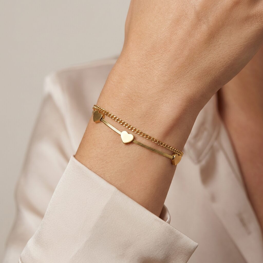 Deze Triple Heart Bracelet heeft een tijdloos en elegant design met twee fijne armbandjes in één, waarvan één is afgewerkt met kleine hartjes. Of je nu een casual look wilt creëren of je outfit wilt opleuken voor een speciale gelegenheid, deze armband is de perfecte accessoire! De armband is gemaakt van stainless steel, dus is waterproof en verkleurt niet!