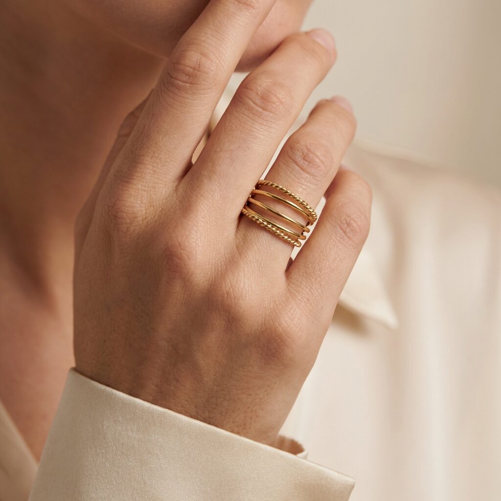 Wie wil deze prachtige Mesmerising Mix ring nou niet? De laagjes zorgen voor een stijlvolle, zachte vorm die deze gouden ring een luxe uitstraling geeft. Een tijdloos sieraad dat bij elke outfit past. De ring is gemaakt van stainless steel, dus is waterproof en verkleurt niet!