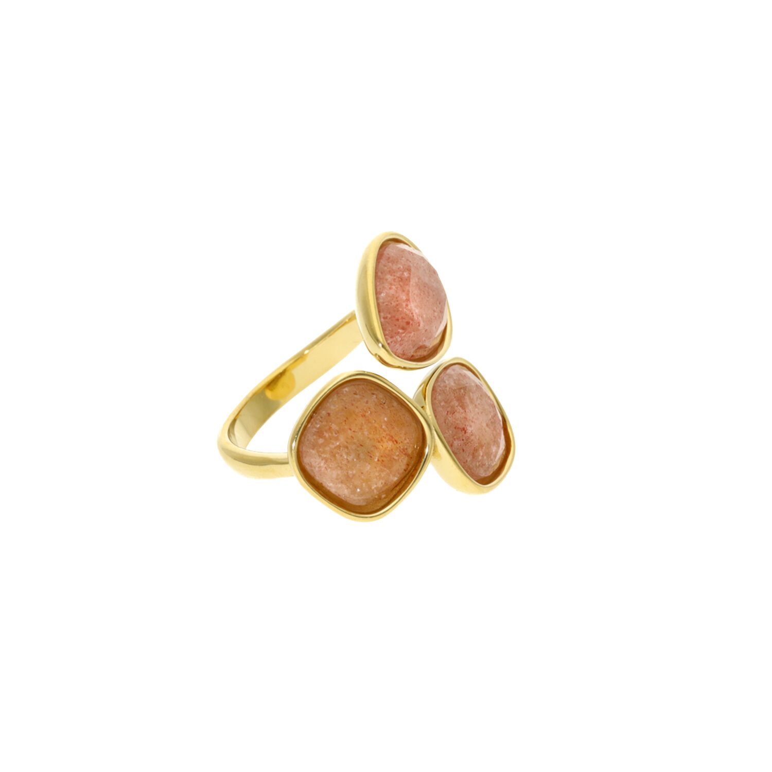 Deze ring heeft drie unieke, natuurlijke stenen van rozenkwarts, elk met hun eigen zachte glans en karakter. Perfect om te combineren met onze andere ringen voor een speelse en persoonlijke ring party. De ring is verstelbaar en past van maat 17,5 t/m 19. Gemaakt van stainless steel, dus is waterproof en verkleurt niet!